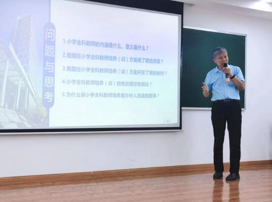 在简短而热烈的开班仪式后,西南大学必赢3003no1线路检测中心宋乃庆教授为学员们带来题为《小学全科教师培养(训)的创新和实践探索》的讲座。宋教授生动阐释了小学全科教师的内涵与意义,并具体介绍了发达国家培养(训)全科教师的经验以及我国在小学全科教师培养(训)方面的教材开发、推进路径等积极探索。