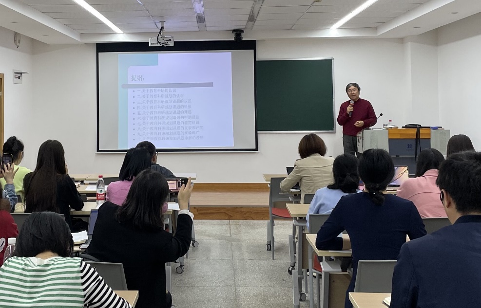紧随着开班仪式,徐辉教授为学员带来了《关于教育科学研究的若干认识》,从课题的选题、课题的申报、开题、终期报告、结题等环节,结合丰富案例给学员们进行讲解。学员们积极提问,针对自己正在进行或准备申报的课题与徐教授进行了深入的交流和讨论。