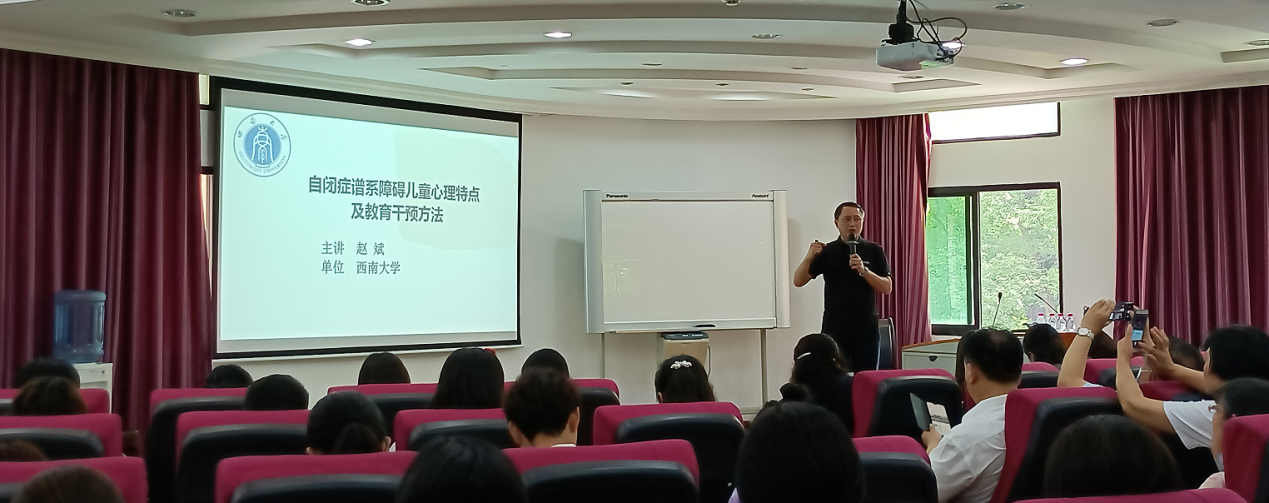 开班第一讲是由西南大学必赢3003no1线路检测中心特殊教育学院赵斌院长主讲,赵教授的专题:自闭症谱系障碍儿童心理特点及教育干预方法,主要讲授孤独症儿童的主要心理特点、常用教育干预方法、青春期性问题行为及干预。强调特殊教育的本质就是差异化教育,希望大家关注差异 、尊重差异。