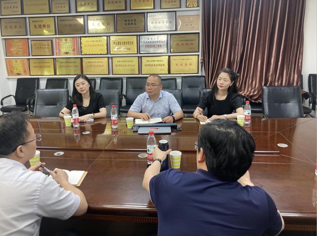 2021年6月16日,重庆市两江新区星湖学校校长张先彬一行三人来学部洽谈合作事宜,学部党委副书记、纪委书记卓玉兵、副部长彭泽平、课程教育研究院副院长艾兴、研究生培养办主任秦荣芳、教学办主任田京巾参加了合作洽谈会。