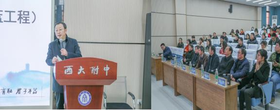 1月29日下午,西南大学附属中学教师专业能力提升项目(青蓝工程)在附中万象楼阶梯教室正式启动。这一项目是学部和附中在已有长期合作基础上的进一步深化,以此助力附中青年教师在课堂教学等方面能力的整体提升,打造一批朝气蓬勃、能力卓越的“种子”教师。
