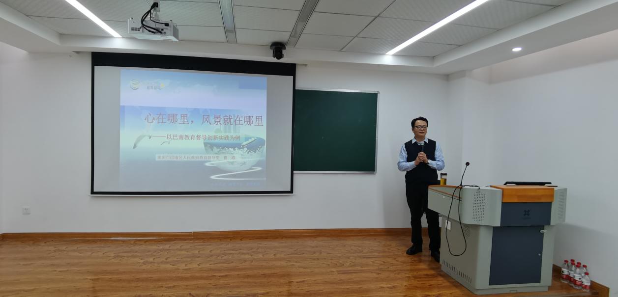 开班第一讲由重庆市巴南区人民政府教育督导室曹路主任担任主讲,曹主任的《心在哪里,风景就在哪里》以巴南区教育督导创新实践为例,讲述了督导工作系统设计、完善保障、健全体制等,对督学履行职责"五常"、督导流程"五有"、督导方式"五法"、督导实效"五字"进行精准的梳理,强化督导实效,才能助推教育改革发展。