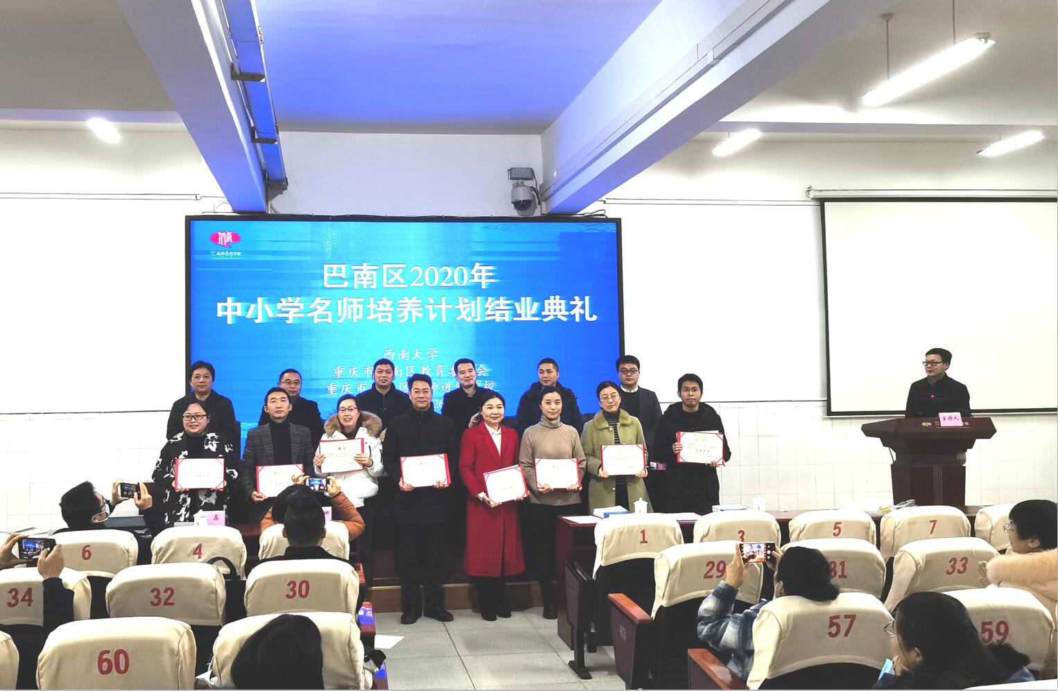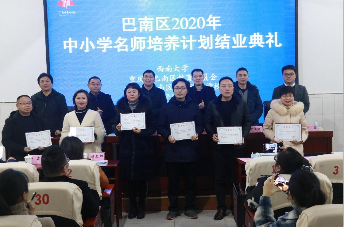 2020年12月26日上午九点,重庆市巴南区2020年中小学名师培养项目高级研究班结业典礼在巴南区教师进修学校举行。该项目由巴南区教委、巴南区教师进修学校与西南大学必赢3003no1线路检测中心联合制定,来自巴南区各个中小学的共计29名学员在本次计划中顺利结业。
