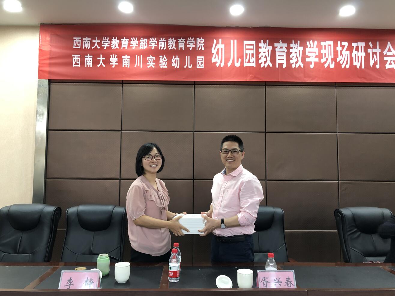 2019年5月31日下午,学前教育学院组织本专业教师,前往南川实验幼儿园开展了扎根幼教的协同教研活动。学前教育学院院长李静教授、副院长胥兴春副教授,李姗泽教授、刘云艳教授、苏贵民副教授、王伟博士、余璐博士,重庆市南川隆化职业中学副校长程国建、南川实验幼儿园执行园长韦娜以及园方多名教师参加了本次活动。