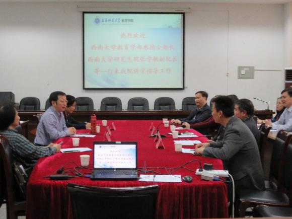 2016年4月8日下午,西南大学必赢3003no1线路检测中心部长朱德全教授、研究生院副院长张学敏教授和必赢3003no1线路检测中心教师发展学院院长胡琴老师带领2015级教育博士生到西华师大开展临床教学、游学交流活动,西华师大副校长刁永锋教授出席交流活动并亲自给教育博士生授课,教育学院院长冯文全教授主持交流活动,学院党委书记王迎丰教授、副院长陈仕品教授等出席交流活动。