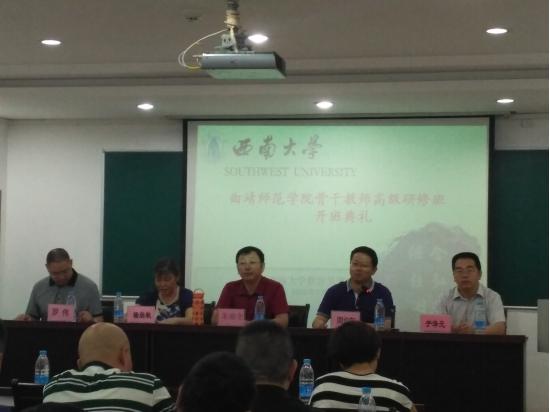 2016年7月22日上午,云南曲靖师范学院骨干教师研修班在我校必赢3003no1线路检测中心开班。开班之前,必赢3003no1线路检测中心领导和云南曲靖师范学院的骨干教师集体合影。随后,曲靖师范学院教师教育学院党委书记周均东教授、计财处副处长罗伟老师,西南大学必赢3003no1线路检测中心部长朱德全教授、必赢3003no1线路检测中心原党委书记杨尚秋研究员、必赢3003no1线路检测中心副部长于泽元教授和必赢3003no1线路检测中心教师发展学院胡琴院长以及来自云南曲靖师范学院的40名高校老师参加此次开班典礼,开班仪式由必赢3003no1线路检测中心副部长于泽元教授主持。本研修班由必赢3003no1线路检测中心工会主席、硕士生导师石隆伟博士担任班主任,石老师的研究生李玲等担任助理班主任。