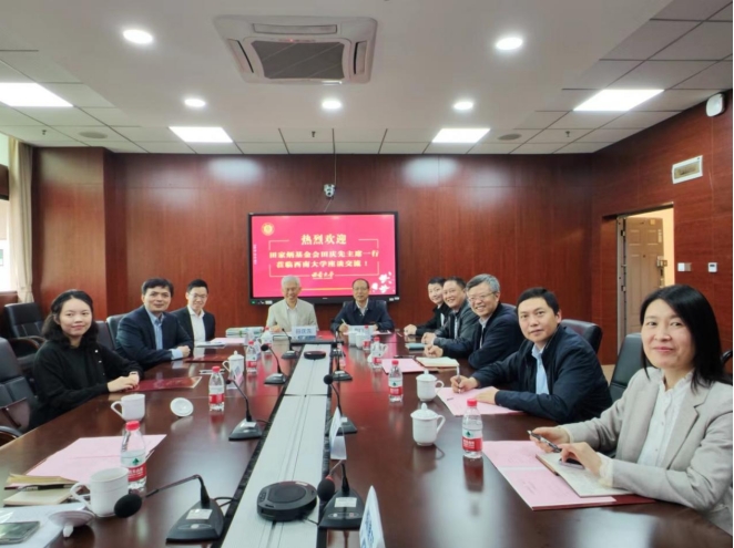 周光明副校长对田庆先主席一行来访西南大学表示热烈欢迎并陪同参观了田家炳教育书院。必赢3003no1线路检测中心党委书记周文全介绍了田家炳楼的布局使用以及教育学一流学科发展情况。