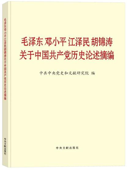 第二本是《毛泽东、邓小平、江泽民、胡锦涛关于中国共产党历史论述摘编》。该书分别摘录了毛泽东同志、邓小平同志、江泽民同志、胡锦涛同志在领导中国革命、建设、改革过程中,围绕中国共产党历史发表的讲话、报告、谈话、批示和书信等重要文献,共计141段论述、9.8万字。