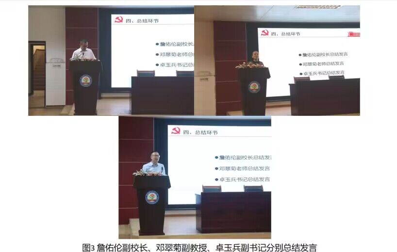 最后,詹佑伦副校长、邓翠菊副教授和卓玉兵副书记对本次支部活动进行了点评。詹佑伦副校长高度肯定了“课例研究”主题研讨的高度政治站位和小组座谈交流的接地气。邓翠菊老师认为这是一场深入一线乡村学校,把论文写在乡村教育的校园中、教室里的特色党建活动案例。卓玉兵副书记希望博士生第一党支部发挥好专业优势,持续推进并长效实施科研帮扶活动,将党建与学术团队的结合,致力乡村教育振兴,做出特色、做出水平、做出成果。