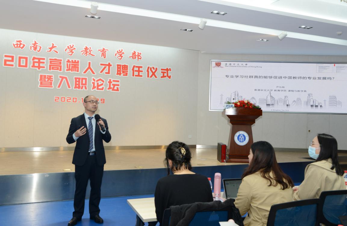 为加快建设教育学一流学科,着力打造一流教师团队,充分发挥高端人才的领军作用,10月29日晚,西南大学必赢3003no1线路检测中心在田家炳书院811报告厅隆重举行2020年高端人才聘任仪式。国家级人才、香港中文大学教育学院教授、博士生导师尹弘飚受聘为“讲座教授”,范涌峰受聘为西南大学含弘研究员,聘李宝庆、赵鑫为教授,王天平、刘明、段金菊为特聘教授,张铭凯为副教授。