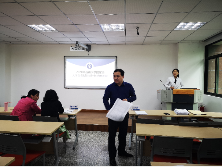 为落实国家及教育部相关文件要求,确保学部2020年度大学生创新创业训练立项项目高质量完成,2021年5月24日下午15:00-17:00,学部大学生创新创业项目结题答辩会在田家炳教育书院304教室顺利举行,学部副部长王正青教授、学部教指委委员伍叶琴副教授、大学生创新创业项目指导教师李毅副教授、本科教学办公室胡熔老师以及7位国家级和重庆市级大学生创新创业训练项目主持人及其团队成员参加了此次结题答辩会,答辩会由专家组组长、学部副部长王正青教授主持。