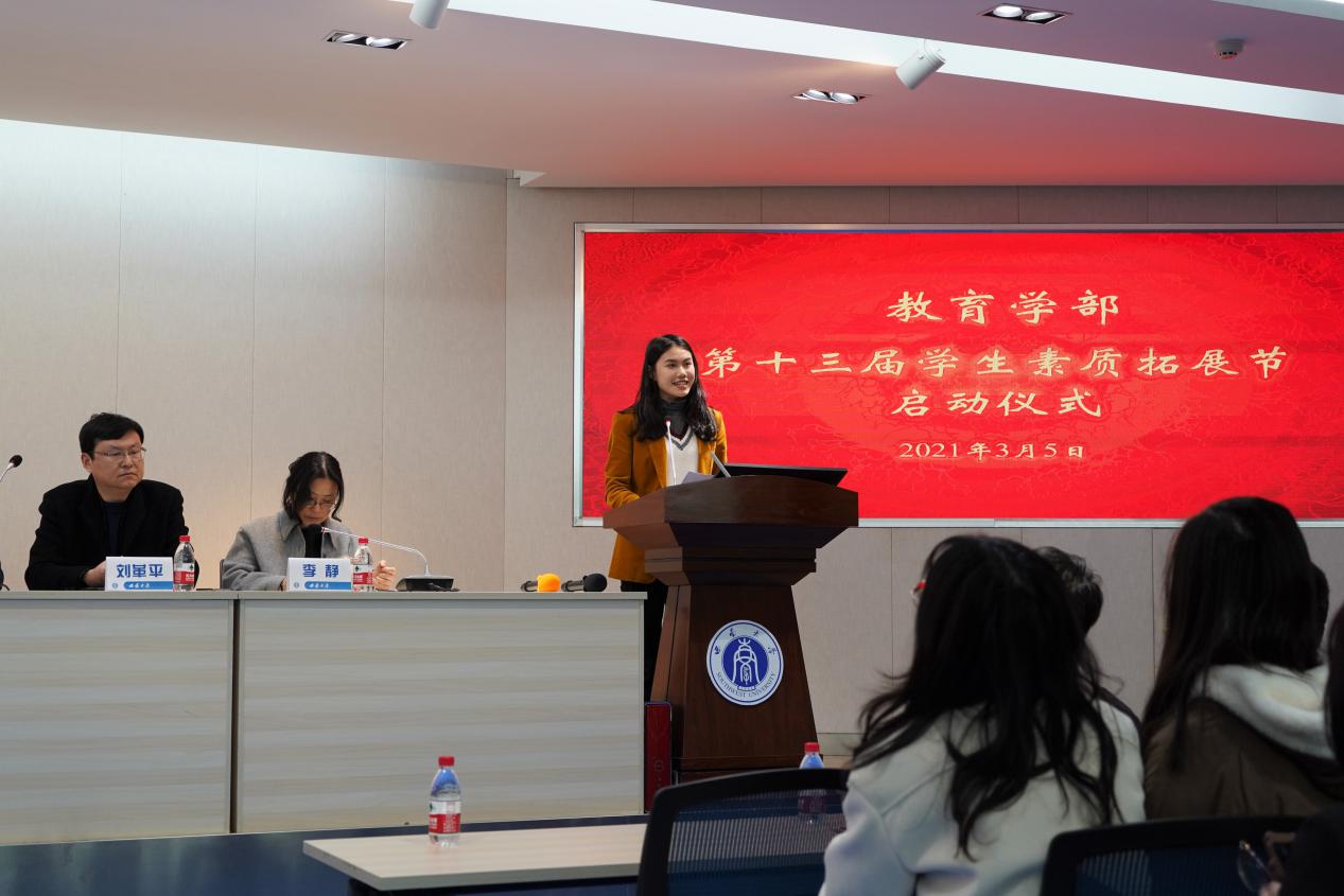 为了提高大学生的思想政治觉悟,夯实其专业技能,激励广大学子奋发向上、开拓进取的精神,为党的下一个辉煌百年夯实教育基础,3月5日下午4点30分,必赢3003no1线路检测中心第十三届素质拓展节启动仪式在田家炳教育书院811卓越讲坛报告厅隆重举行。出席此次活动的有学部党委书记王牧华教授,学部党委副书记刘娇老师,学部副部长王正青教授,学部教育学院院长么加利教授,学部教育技术学院院长刘革平教授,学部学前教育学院院长李静教授,学部特殊教育学院院长赵斌副教授以及全体本科生辅导员、2019和2020级各班班主任老师。此外,参加本次活动的还有学部2019级、2020级全体本科生。