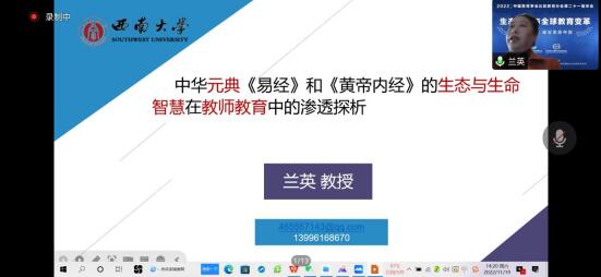 兰英教授担任了“生态教育内涵与理论争论”分论坛下半场的点评人,并做了题为“中华元典《易经》和《黄帝内经》的生态与生命智慧在教师教育中的渗透探析”的报告。报告围绕论题的形成、元典意蕴阐释、元典中的生命智慧教育与教师教育中的渗透思考几方面内容,阐释了教师生命性成长的内涵特质。