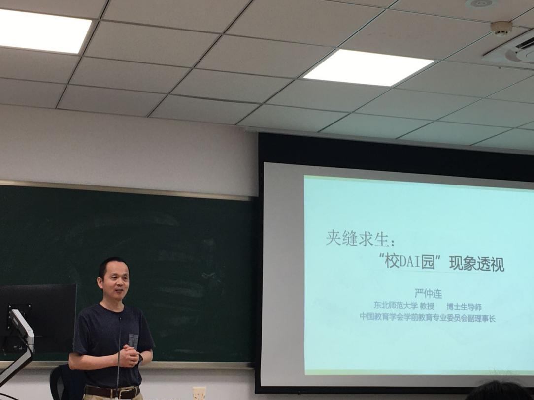 2021年5月29日晚七点,学前教育专业博士研究生和硕士研究生在田家炳518教室聆听了一场由东北师范大学必赢3003no1线路检测中心学前教育学科负责人、博士生导师严仲连教授带来的关于《校DAI园现象透视》的讲座。本次讲座由必赢3003no1线路检测中心李姗泽教授主持。