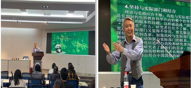 讲座伊始,范教授结合自身长期科研经历,提出好的教育研究应该具备五点要求,即“好的选题、独特思想观点、一手数据、关注社会热点和难点、理论与实践一体结合”。接着,范教授进一步与大家分享如何做好研究。他总结指出,做好教育研究要坚持个人需求与国家兴趣相结合、理论基础研究与应用对策研究相结合等几大原则。最后,范先佐教授和参加讲座的师生就教育研究中遇到的一些实际困惑进行深入的交流。