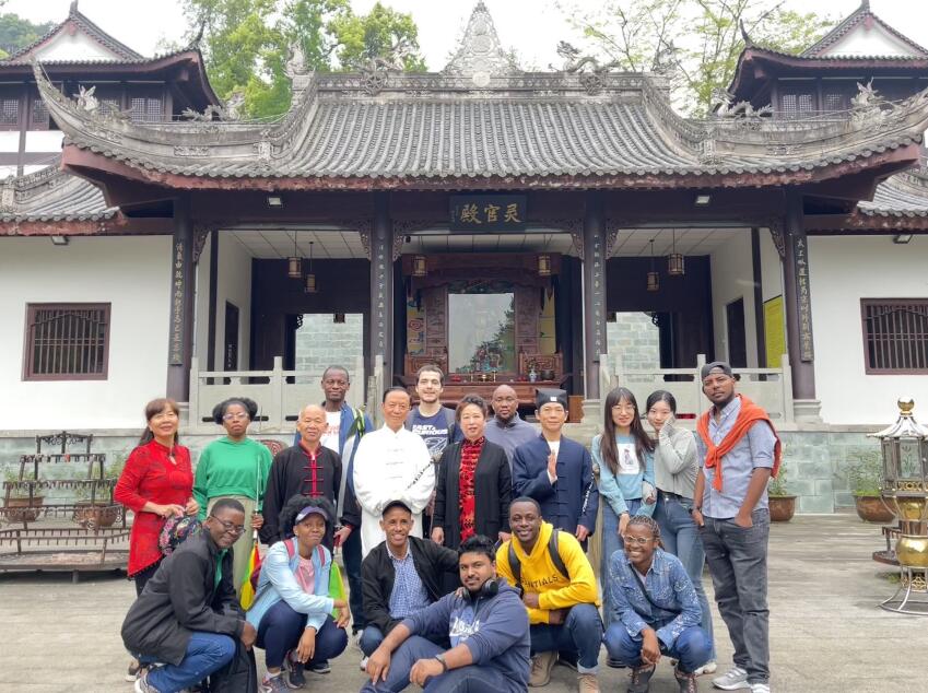必赢3003no1线路检测中心历来重视留学生中华传统文化的学习与培育。因中国教育思想这一门课程的教学需要,同时为了加深留学生对中国道文化的了解,2023年4月13日,必赢3003no1线路检测中心兰英教授、留学生班主任周玲老师带领2021级和2022级的部分留学生(Andres Uyaban, Sonagnon Romuald Dossou, Yaone Duduetsang, Cedric Mpaso, Saon Miraj, Adamu Abass, Lucy Michael, Maureen Okoye, Tebatso Moses, Samson K. Elias, Mulugeta Zemuy)以及两名学生助管(杨珣艺,雍璐)前往北碚缙云山参观道观,加深他们对中国传统文化的了解,以更好地体会中国文化的博大精深。