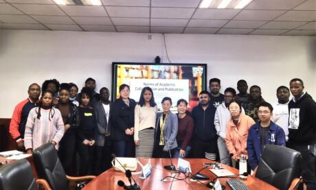 本次工作坊邀请了唐颖副教授作《学术合作与学术发表规范》的主题分享,全英文教研室王雪主任、胡燕娟副教授、留学生班主任李雪垠博士和周玲博士,学部全体留学生和部分感兴趣的硕博研究生近60余人参加了工作坊学习与交流,并通过钉钉平台线上同步直播互动。