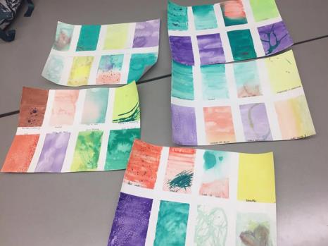 同时,在当天的教学活动中,同学们学习了水彩画的八种技巧,包括平刷、渐变、晕染、吹画、撒盐、刮画等。