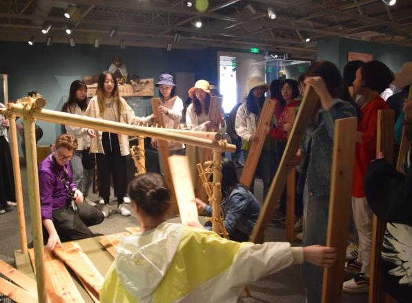 在当地的印第安历史文化展区中展示了当地古印第安族群的语言、生产与生活,在博物馆员的指导下,同学们全员合力搭建了一座古印第安人房屋,共同体验了古印第安人不用钉子和粘胶,凭借天然材料构建房梁和搭建墙壁的技艺,都惊叹于不同文化下多彩缤纷的智慧。