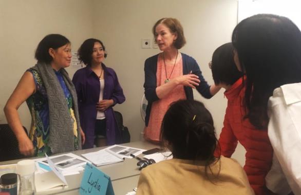 2019年7月23日上午,Hughes教授和同学们讨论了“Vivan Paley的故事听写和故事表演”专题,即教师收集幼儿创作的故事作品的策略,教师运用收集的幼儿故事作品引导幼儿进行故事表演的策略。