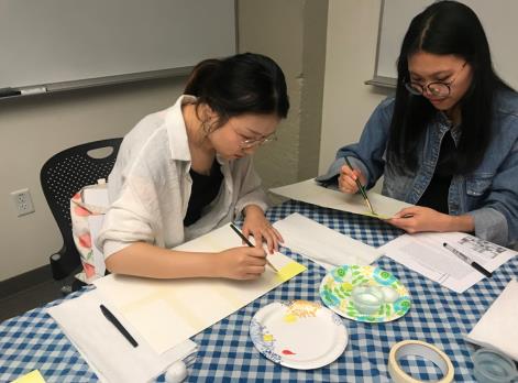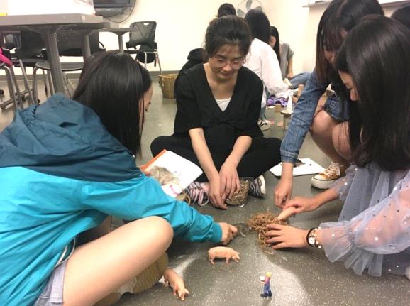 在课堂引导中,我们充分体会到“故事讲述”是一种将游戏、艺术和语言融为一体的互动教学,Hughes教授为同学们介绍了几种开展幼儿故事讲述活动的方式,包括故事垫子、听写和表演、故事盒子、故事桌子、积木区域、水彩等。在这一过程之中,同学们通过知识学习和亲身体验等一系列操作性活动更加深入的理解了意大利瑞吉欧“儿童有一百种语言”这一思想的内涵与精髓,还学习到幼儿教师如何运用不同的方式让幼儿表达自己的想法,形成属于幼儿自己的故事,进而在游戏中发展幼儿的创造力、想象力和言语等各方面的能力。