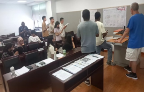 结业仪式上,曹力教授肯定了同学们的成长和进步,这个一如往常的两周,也是同学们辛勤努力的两周,并祝贺同学们在未来的学术生涯或社会生活中有所作为。同时,同学们也都应邀对本门课程提出了一些自己的见解与想法,曹力教授一一回应,并对一些教育现象进行中美比较,解开了同学们对美式教育的些许困惑。同学们带着诚挚的祝福和深切的情意,感激曹教授这一段时光辛苦的付出,不远万里来到炎炎夏日的重庆,在送给曹老师的贺卡上,每一个同学都用一个单词表达了对曹老师的印象,体现出对曹老师负责、辛勤、专业形象的认同。共课教师陈本友老师对本次国际课程周进行了总结,感谢西南大学国际处给予同学们宝贵的学习机会,感谢曹力教授的辛勤付出、感谢所有同学们的热情参与,感谢大家的坚持,希望大家都能在未来走得更远。