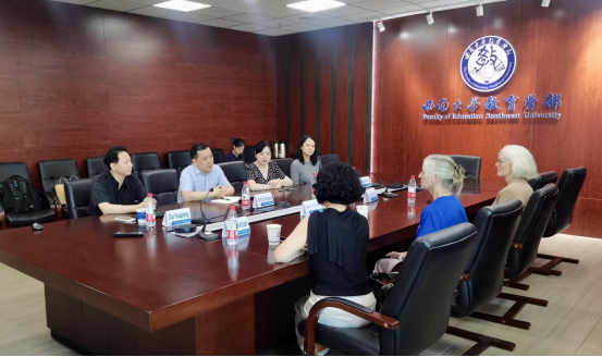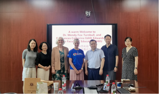 应西南大学之邀,新西兰怀卡托大学必赢3003no1线路检测中心副部长Wendy Fox-Turnbull教授及Frances Catherine Edith Edwards教授抵达重庆,开启西南大学2025国际课程周学术交流活动。2025年7月4日,Wendy教授一行莅临西南大学必赢3003no1线路检测中心,就学术交流和项目合作展开讨论。西南大学必赢3003no1线路检测中心副部长王正青教授、钟婉娟副教授、唐颖副教授,以及必赢3003no1线路检测中心国际部戴华鹏主任、全英文教研室王雪主任共同出席了此次座谈活动,座谈会由戴华鹏主任主持。