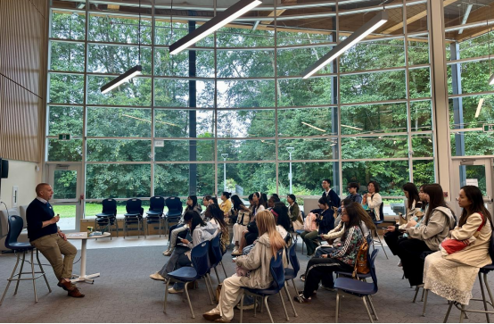 7月25日,访学团深入北温哥华学区的中学École Argyle Secondary School暑期课堂,实地观摩英属哥伦比亚(BC)省的中学教学。在校园中,不同年级的学生们在教室里专注学习,多样的教学形式赋予课程生动别样的诠释。语言课程采用分级互动教学,科学实验室正进行生动的实验项目研讨……暑期学校将学分课程与兴趣拓展相结合,既有数理化强化班攻克难题,也有小说鉴赏即兴创作。访学团走进课堂与当地中学教师交流,深度求知BC省教育实践。