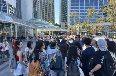 7 月 28 日,访学团成员开启了一场温哥华Downtown的探索之旅。这场以 “城市为课本” 的行走学习,让历史的厚重、文化的肌理与艺术的温度在脚步间生动铺展。探索从 1986 年世博会场馆启程,成员们亲手触摸那段承载城市发展记忆的辉煌印记,感受时代变迁中城市文明的生长轨迹。漫步至历史悠久的 Gastown 街区,十八世纪的蒸汽钟准时奏响复古旋律,红砖建筑在光影中静静诉说老城的岁月故事。驻足温哥华美术馆,成员们在流动的光影与绚烂的色彩间流连,目光掠过画作与雕塑,真切感受艺术创作的脉搏与人文精神的共鸣。这场“行走的学习” 不仅是一次城市观光,更是一场沉浸式的文化体验 —— 知识跳出书页,在与温哥华的深度对话中悄然生长,为访学团成员们打开了理解城市文化与历史的新视角。