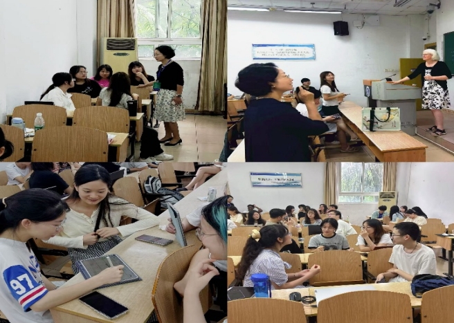学部钟婉娟老师作为共课教师,积极协助Frances教授开展教学工作。她适时切入Frances教授的课堂教学内容,帮助学生更好地理解要点。钟老师凭借其丰富的跨文化教学经验,在课堂互动、案例分析及学生指导等方面发挥了关键作用,有效促进了课程的顺利推进和教学效果的显著提升。有学生表示,在这门课上,他深刻体会到了“双师课堂”的真正协作魅力。