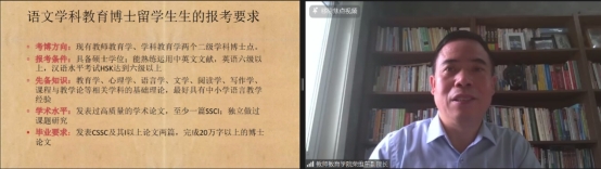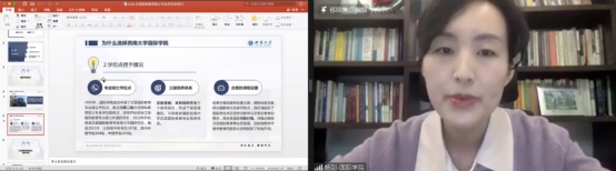 国际学院汉语国际教育系主任杨甜副教授全面介绍了国际学院及其专业特色,重点介绍了汉语国际教育硕士的培养方案和“求真知、谋大同”的育人场域。