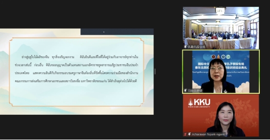4月24日上午,国际学院、必赢3003no1线路检测中心及教师教育学院受邀参加由泰国教育部民校教育委员会(以下简称民教委)和孔敬大学孔子学院(以下简称孔敬孔院)共同举办的“泰东北民校本土中文教师培训”,向380名泰国教师(80人线下,300人线上)介绍中文及教育学科硕博专业的设置、招生及培养,这是去年12月以来国际学院开展的第7场招生宣讲,参加人数和影响再创新高。