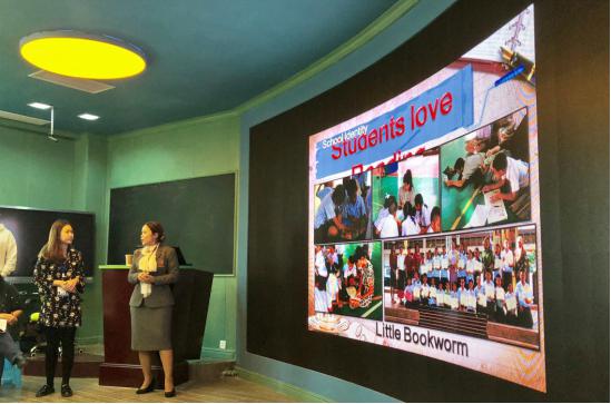 紧接着,泰国的Tungmahamek学校校长Sudarat Ponpangp女士围绕《本校学生阅读习惯的促进项目》展开汇报。着重介绍了泰方学校注重营造良好的阅读氛围和开展多样的阅读拓展活动,比如ReadingLounge,Story tellingActivity等,旨在让所有学生都能够发自内心地爱上阅读,而不仅仅把阅读当作学习任务。