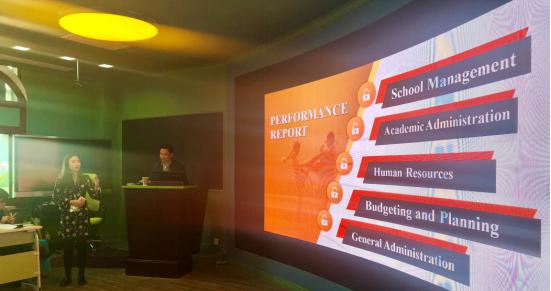 首先,由Mary Thongchai学校校长JarupathChaiyadith先生结合学校案例,分享了《学校管理的充分性经济哲学》。随后,重庆市人和街小学张婕副校长以《走进大数据:“人和”教育的实践与探索》为题,从个性化教育和智慧教育学两方面介绍了基于教育大数据的人和教育治理框架。“个性化教育”即深入分析学生发展数据、利用资源教室进行个性化培训和丰富“人和六质”自主选修课程,“智慧教育”则是指分析课堂行为以优化和声课堂教学模式和利用学科平台来构建形成性评价系统。