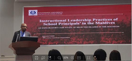 最后,学部的博士生Mohamed Waheed同学上台,与我们探讨了马尔代夫的校长们所进行的教育领导力的实践活动。他认为,马尔代夫的学校校长们在处理与道德、核心教育和社会教育价值等相关的问题时面临了挑战,并基于马尔代夫的教育领导力实践的现状提出了解决措施,为我们更好的了解马尔代夫,促进其教育公平的发展助益良多。