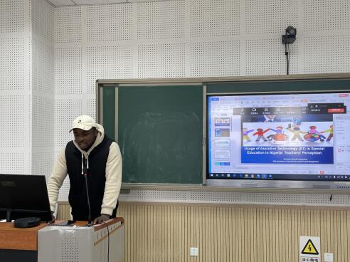 Emeka Augustine Echendu from Nigeria presented his future study plan on the Usage of Assistive Technology in Special Education in Nigeria. Professor Yao Jiali suggested he narrow down this topic, and Associate Professor Francis Stonier suggested he make this topic clearer for better understanding.