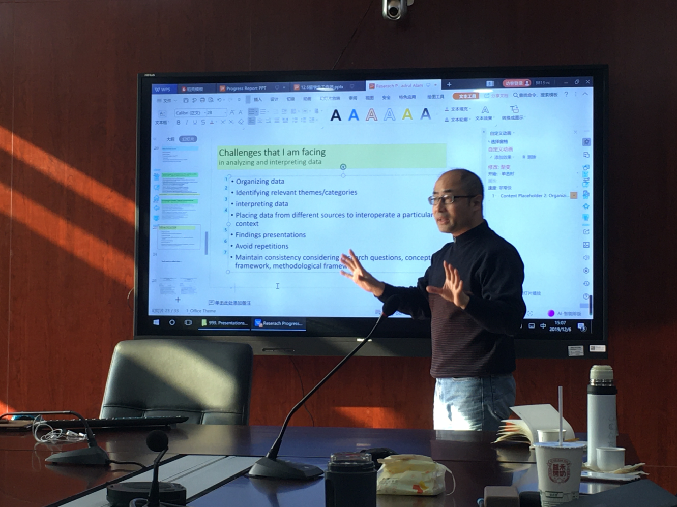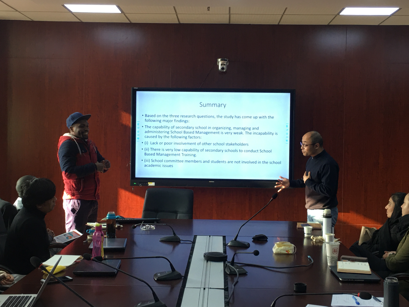 此次工作坊由17级、18级班主任周玲老师主持,共有九名留学生进行汇报交流,汇报内容分为两个部分:五名三年级留学生汇报博士论文研究进展,四名即将开题的二年级留学生汇报研究选题和论文的初步计划。