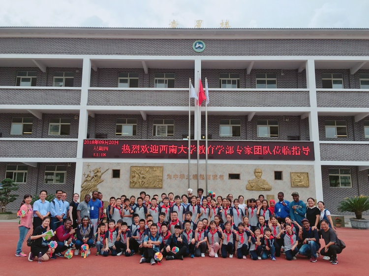 9月20日,在必赢3003no1线路检测中心韩仁友书记、王华敏副书记的组织和领导下,留学生班主任周玲老师带领学部全英文留学生一行18人来到重庆市南川宁江小学参观学习。