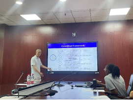 曹力教授主要教授教育心理学、研究方法与项目评估等本科和研究生课程,在教育研究方法与实践方面有着丰富且专业的经验和心得。本次学术工作坊分成两组,采用一对一指导的形式进行,每名参与的留学生根据自己的研究进展进行5分钟的汇报,包括选题立意、理论框架、研究方法设计、数据收集及分析等方面,并提出相关实际问题寻求曹教授的指导和建议。曹教授以其丰富的教学和研究经验,对每位留学生的研究设计进行了富有针对性指导和有意义的反馈,帮助他们更清晰地认识到自己研究中的不足之处,并且掌握了如何改进的方法和策略。