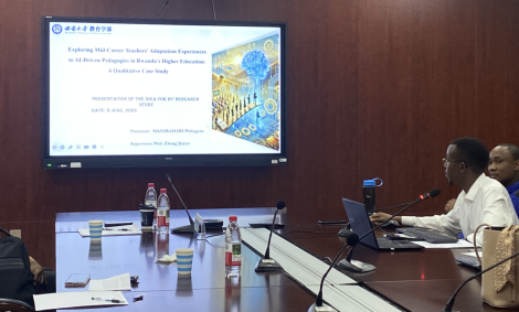2024级博士研究生Philogene Manirahari表示:“我打算通过案例研究去探索职业中期教师如何适应人工智能驱动教学法。尹教授建议我明确界定核心概念以确保研究范围得到充分的理解;他指出我需要进行更深入的文献回顾,并改进抽样策略,以确保可行性和可访问性。他还建议我重新评估研究问题与转化学习理论之间的连贯性,探索其他可能更准确的理论框架。作为一年级博士生能够有机会分享我的研究兴趣并获得深思熟虑的指导,我受到非常鼓舞。”