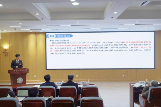 非师范场决赛现场,在之前比赛中脱颖而出十二个小组各显神通,研究选题跨度广泛,涵盖了从身边的大学生隐性逃课的问题到国家层面的教育制度,体现了必赢3003no1线路检测中心学生专业知识和实际应用的巧妙结合。田朔同学带来的《可预测绘本在线教学对孤独症儿童口语表达能力的影响研究》聚焦可预测绘本在线教学对孤独症儿童口语表达能力的影响,展现了可预测绘本在线教学的具体流程以其取得的成效;袁李可同学带来的《基于学龄人口变动的西部地区义务教育资源优化配置研究》关注国家层面的教育问题,通过详尽的数据,严谨的调查得出了义务教育资源优化配置的各项指标的科学性、合理性建议。