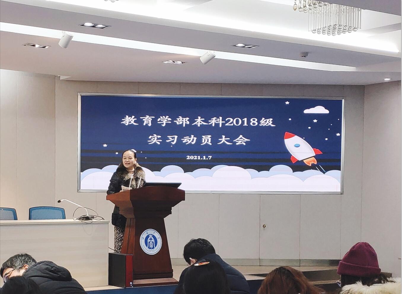 为促进高校专业人才培养方案和教学计划的进一步落实,推动专业学生更好地将理论知识转化为实践行动,确保实习工作的顺利开展,西南大学必赢3003no1线路检测中心特于2021年1月7日上午10点在田家炳教育书院811卓越讲坛报告厅隆重举行必赢3003no1线路检测中心本科2018级实习动员大会。出席本次动员大会的领导和老师有:必赢3003no1线路检测中心副部长王正青教授,特殊教育学院院长赵斌副教授,学前教育学院常务副院长胥兴春副教授,教育学院副院长田晓伟教授,教育技术学院常务副院长余亮副教授,教育学专业实习指导教师邓翠菊副教授,2018级晏阳初创新实验班班主任、实习指导教师张铭凯副教授,学前教育专业实习指导教师王丹副教授、苏贵民副教授、余璐副教授,特殊教育专业实习指导教师凌东山老师,教育技术专业实习指导教师段金菊教授、奚晓霞副教授、谢涛副教授、陈敏老师、韩继宁老师,2018级教育技术班班主任、实习指导教师龚朝花老师,必赢3003no1线路检测中心团委书记、本科2018级辅导员李晶晶老师。此外,到场的还有学部本科2018级全体学生。