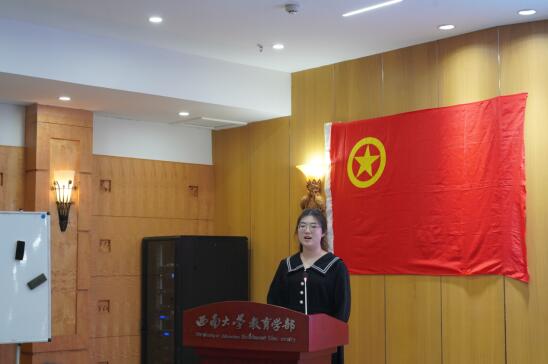 第三十五期分团校新学员代表李蕊发言。承前人之光、追时代之光、耀个人之光,她呼吁广大团员 青年要在中国共产党的领导下用有限的青春创造出无限的价值并带领全体学员进行庄严的宣誓。