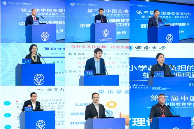 2023年11月25日至26日,第三届中国基础教育论坛暨中国教育学会第三十五次学术年会在重庆召开。本届论坛主题为“加快建设教育强国——聚焦深化教育教学改革”,旨在紧紧围绕党中央关于建设教育强国重大决策部署,聚焦深化育人关键环节与重点领域改革,通过主旨报告、校长星空、主题发言、课例观摩、分论坛、微论坛等多种形式,展示中国基础教育改革发展前沿进展、学术成果与实践探索,助力基础教育高质量发展。
