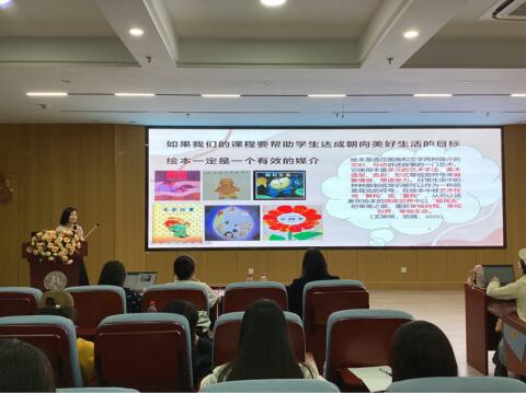 讲座中,王琳琳副教授为到场师生介绍“戏剧”与“教育”之间的关系,揭开教育戏剧“神秘的面纱”。王琳琳副教授深耕学前融合教育理论与实践、特殊儿童教育戏剧干预、特殊儿童家庭社会融合等领域。王教授结合实践经历阐明,教师单方面传授知识远不及邀请学生参与其中来得有效果,她以教育戏剧为载体,展示了绘本融入教育教学的多种形式与双重魅力。