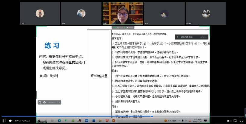 吴迪老师以宏观到微观的设计思路,以个别化教育的核心内容个别化教育计划(以下简称IEP)为重点,从IEP相关理论回顾、IEP的区域与学校管理和IEP的制定与校本化实施三方面进行了分享。首先,吴老师分析了目前国家层面及成都市出台的个别化教育相关政策、办法,这是推动IEP制定与实施的重要保障。同时她指出个别化教育计划是教育教学的服务工具、各级组织的管理工具、评价教育质量的考核工具以及团队合作的沟通工具,其制定与实施具有重要意义。在IEP的区域与学校管理方面,吴老师强调,区域IEP的管理包括制度规引、评价导引、平台指引和项目牵引四个方面,并分别就这四方面进行了具体详细的阐述和举例说明。在IEP的制定与校本化实施方面,吴老师详细介绍了成都市锦江区特殊教育学校个别化教育计划的制定流程及具体管理与实施,包括组建团队、评估、初拟IEP、IEP会议、实施及评鉴等流程。同时,吴老师以生动的实例向同学们讲述如何撰写IEP,通过吴老师提供的指导性练习,进一步地掌握了IEP长短期目标撰写的要点。最后,参与本次讲座的师生和吴迪老师进行了互动提问,江老师对讲座进行了简要的总结,她强调,个别化教育是特殊教育高质量发展的重点,也是一个巨大的挑战,凸显了特殊教育的专业性、不可替代性。希望同学们坚定初心,增强信心,成长为像吴迪师姐这样优秀的特教人。
