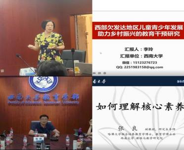 下午,李玲教授以《西部欠发达地区儿童青少年发展助力乡村振兴的教育干预研究》为主题,从理论基础出发,以西部欠发达地区的46个乡镇为样本,通过追踪研究,最终提出了干预项目,过程详实,图文并茂地为营员们作了精彩分享,使大家感受到了学术之魅力。最后,李玲教授与同学们积极互动,讨论氛围热烈。线上线下同学踊跃提问,李玲教授逐一进行了细致的解答。随后张良副教授以《如何理解核心素养》为主题,由“何为素养”这一问题引发营员们的讨论,向大家讲述了核心素养的发展历程,同时借助案例逐步引导大家对核心素养这一概念的思考和理解。 最后张良副教授耐心解答了营员们的问题,并祝愿大家在本次夏令营中收获多多。