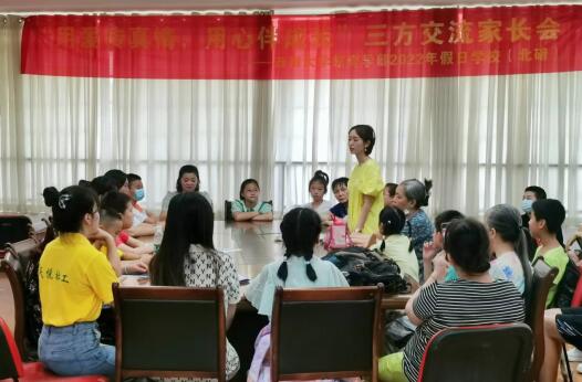 耐心阐释,细细解读,只为令家长放心;认真安排,巧思规划,只为让学生开心。为更好地联系家校双方,使家长更深入地了解假日学校的宗旨与安排,为孩子们提供更为丰富、安全、完善的假日学校体验,7月6日假日学校于天津路社区和荷花池社区分别召开了“用爱传真情,用心伴成长”三方交流家长会。