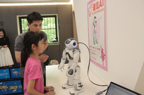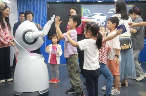 活动中,志愿者引导小朋友与“克鲁泽”交流互动和“NAO”机器人共舞,在教育机器人的陪伴下,小朋友们更好地融入并参与活动,活动现场井然有序,大家在轻松愉快的氛围中感受着人工智能的魅力。