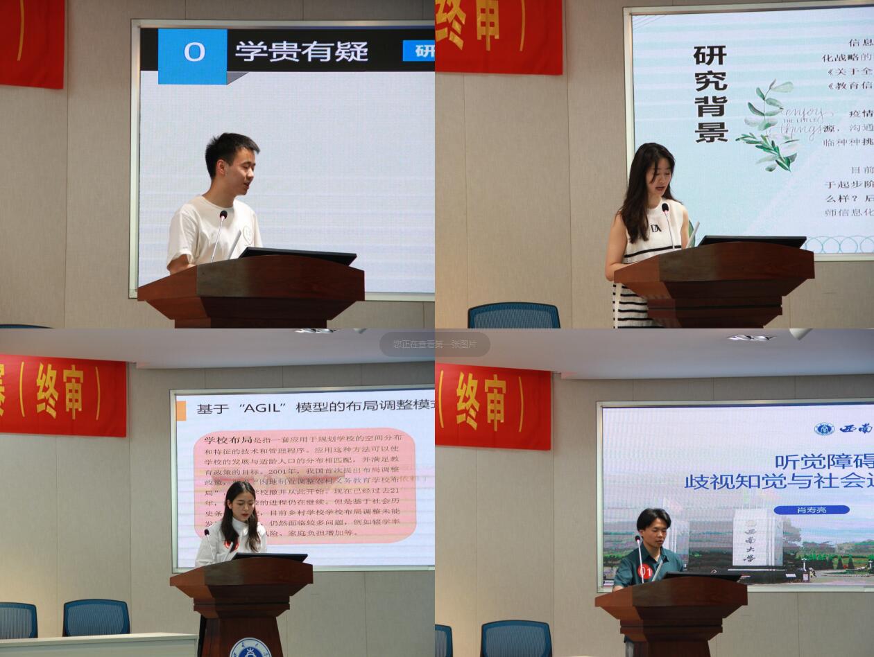 启动仪式后,进行了第十五届“志汉杯”研究生学术作品竞赛(决赛)。唐智松老师、李宝庆老师、王天平老师、王书林老师、陈本友老师、江小英老师担任了此次决赛的评委,研会工作人员罗昆担任主持人。经过前期七个分论坛的激烈角逐,最终选拔出了14名选手进入决赛,在主持人罗昆宣读完汇报规则后,14名选手分别就各自的学术作品进行了汇报。汇报的内容涉及特殊教育、职业教育、教师技术焦虑、乡村学校布局、幼儿教师信息化学习力等多领域的教育话题,充分展现了必赢3003no1线路检测中心研究生们的学术风采。